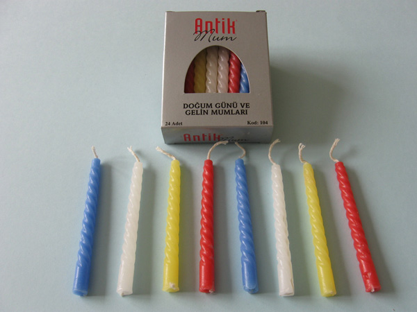 Bu ürün doğum günü mumu ve gelin mumu olarak kullanılmaktadır. Bu ürün aynı zamanda Hanukkkah mumu olarakta kullanılmaktadır. Ürünlerimizde iyi kalitede parafin, pamuk fitil ve diğer hammaddeler kullanılmaktedir. Her paket 24 adet mum içermektedir. Ayrıca yüksek miktarlı alımlarınızda müşterilerimizin kendi marka ve paketleri ile de üretim yapılabilmektedir.